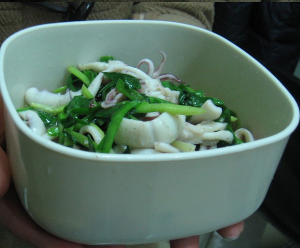 宿舍简单版韭菜炒小鱿鱼(管蛸)的简介: