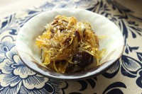 将柠檬皮切成细丝。