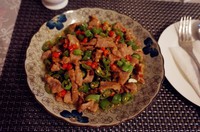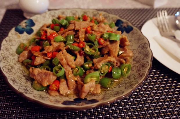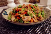 牛肉与辣椒混合,加少许鸡精翻炒均匀即可吃过享用啦!