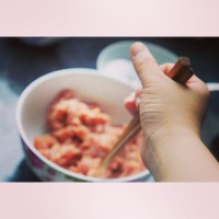 超市买来的猪肉末感觉还不太细,所以回来继续剁,越细越好;