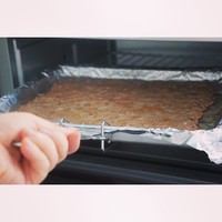 再取出,翻面,把有芝麻的一面放入烤箱,再烤10分钟,取出,肉片呈金黄色即可;