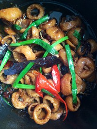 砂锅烧热,下油爆香所有配料,再下肥肠,爆炒下,这张忘记拍了,别忽略。