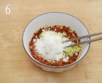 辣椒面放大碗内,加水把辣椒面调匀
