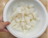 放入苹果丁和梨丁,可以使腌制的萝卜更加的清香,爽脆