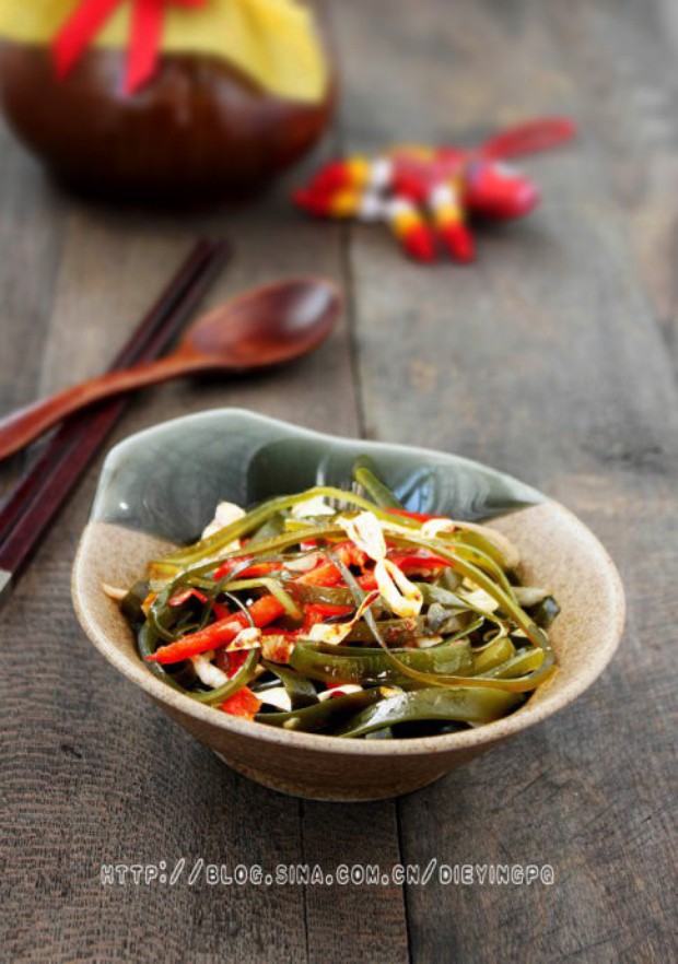 入冬后,寒冷的天气,让人们喜欢多吃些温热的食物来抵御严寒。特别是一年四季中,最让人爱羊肉是正当季,涮羊肉、羊肉汤、羊肉馅等,吃羊肉的确能御寒,但是冬天穿得多活动少,体能消耗小,体内积聚了太多热量和脂肪。此时再吃大量温厚油腻的食物,容易导致胃肺火盛。因此,若能调整饮食,吃道清爽的凉拌菜,对身体大有好处。冬天想不“上火”,适量吃些凉性食物“治表又治本”。相对于煎炒的蔬菜来说,凉拌菜减少了“烹调”这一工序,很大程度地保存了蔬菜中的营养物质。如大拌菜,其中的黄瓜、番茄、生菜可“降火”。各种口味的水果沙拉也是不错的选择。此外,不少家常凉拌菜,如拍黄瓜、凉拌芦笋都有清热去火的效果。凉拌菜中含有丰富的维生素,避免了罪魁祸首高温对它的破坏,大大提高维生素C增加人体免疫力的功效。红油三丝主要用的是海带,海带,又名昆布。素有“长寿菜”、“海上之蔬”、“含碘冠军”的美誉,从营养价值来看,是一种保健长寿的食品。在日本,豆腐配海带被认为是长生不老的妙药。据联合国卫生组织统计,日本妇女几乎不患乳腺癌,主要原因是食海带多。在韩国,人们过生日要喝海带汤,并不是因为吃不起肉才喝海带汤,过生日喝海带汤是为了纪念自己的母亲,因为韩国女人产后都喝一碗海带汤的,滋补用,这是韩国的一种特有的民俗传统。因此,冬季养生别忘了吃点凉拌菜。做凉菜时,不妨放点有杀菌作用的蔬菜,如蒜、洋葱、韭菜、大葱、青蒜,特别是醋,醋既调味又保证了健康。
