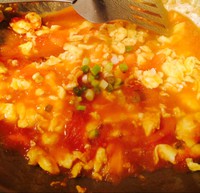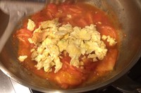 5. 西红柿出汤软烂后放入炒好的鸡蛋翻炒均匀