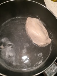 鸡胸肉用手撕成丝,撕的时候小心烫手。可先冷却。