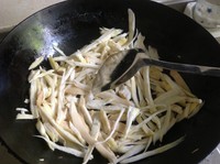 锅内放油,煸香姜,放入杏鲍菇,大火炒软杏鲍菇,尽量蒸发杏鲍菇的水分。