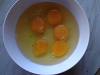 锅烧热,加适量油,把打散的蛋液倒进去,翻炒,盛进刚才的碗中。