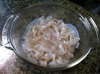 粉皮一小把,放入盆中加开水泡。(泡的时间长,煮的时间就短,泡的时间短,就要久煮一下)。