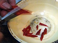 中指那么长的那种辣椒==,反正不是很辣的那种,一点点辣提味就好,太辣就掩盖了这道菜的鲜味了。洗干净把籽去掉,剪成小片备用