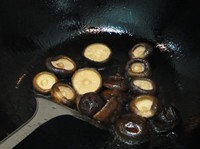 所有材料准备好后就可以开始煮啦~先在热锅里加油,把香菇稍微挤干水分,丢进去炒!
