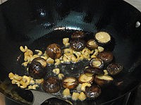 香菇翻炒一阵子,出香味的时候,把虾米和干贝也放进去
