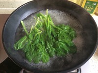 锅里热一锅水,水里放点盐和油,把水煮开,将菠菜放入热水中焯熟捞出