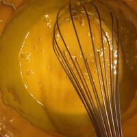 玉米油和10g砂糖倒蛋黄盆中,先放置一边,倒油是防止蛋黄结皮。电动打发蛋清,30g砂糖分别在粗泡,细泡,初纹时分三次加入蛋清,前两次都是高速打,最后中速打,打至大弯钩即可,我这次有点过了。打过了会导致口感偏粗。打好后放冰箱冷藏。