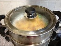 蒸锅水开后放入油豆腐,中小火蒸约15分钟