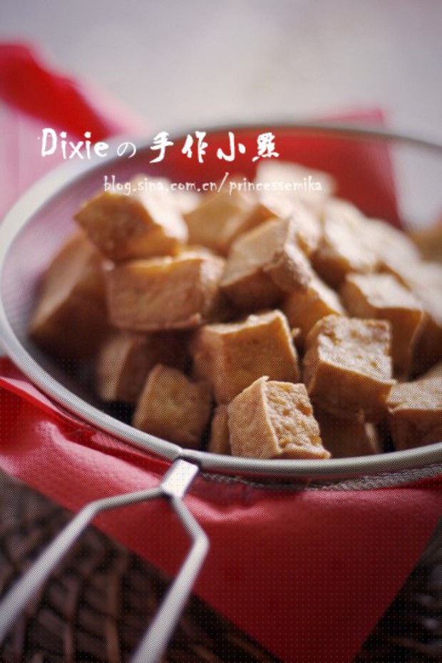 将老豆腐切小块,放入已经做好的卤汁里。8小时以后可用