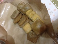 tb买的生坯,说明写的烧烤或者炸,不想多吃油,直接烤箱。非常好吃啊。收货后,打开袋子放太阳下晒了二天,变得臭了一点才做的。