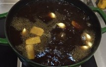 把磨好的豆渣渣全倒进高压锅里,加3杯水……