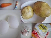 将胡萝卜切条状,鸡蛋洗净,土豆切大片(约1.5cm)。