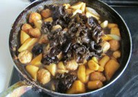 这时加入红烧汁,料酒和适量的水(水量以没过食物的三分之一)