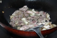 锅里热油,先下肥肉,熬出一点油厚,再下瘦肉