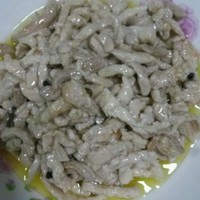 把鸡胸肉解冻,改刀切丝,蛋清,淀粉,白胡椒粉(提鲜去腥味),料酒,盐少许腌制10分钟