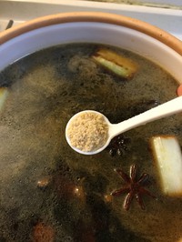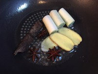 5. 锅里加油,爆香葱姜,桂皮和八角