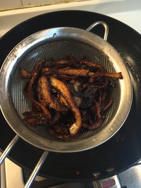 红洋葱丝油炸至金黄色