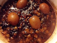 蛋熟了之后立即用凉水浸泡,去壳备用。