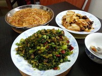 新鮮辣椒以及乾辣椒入鍋爆香,加入香菇丁,再將剛剛切好的雪裡紅菜末加入爆炒,加入適量醬油以及香菇水,炒到菜汁收乾