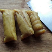 过年的记忆少不了老妈的芋头粽子和碱水粽了,老妈的芋头粽子全家都是非常捧场的。芋头母切成条,拌上辣椒酱,裹进糯香的糯米里,加上粽叶的清香,让人欲罢不能~~嘎嘎,跑题了,吼吼*^_^*这道菜心炒碱水粽一般是年后才会做的,挂在屋梁上风干的粽子,配上新鲜的菜心,那滋味,在记忆里无限蔓延~~