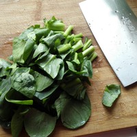 新鲜菜心切成段,最好是叶子和杆子分开,这样炒的时候可以分个先后,不至于把叶子炒太烂了