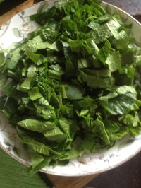 冬苋菜洗净沥水切碎,注意要把粗杆的皮撕掉