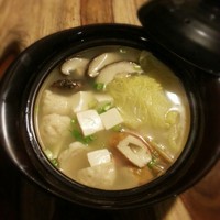 这时候可以调入一点鸡精(俺用的是日本的Hondashi鱼精?不喜欢鸡精也可不加哈!俺在想能不能加点虾米啥的提提鲜,下次试试!),适量盐,试试味道合适后加入豆腐块,白菜叶。注意别过度搅动哦!