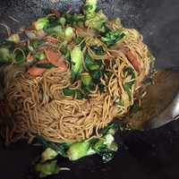 炒面会糊锅,不要害怕,用铲子用力铲掉糊的地方,不要铲出来,糊的吃着很香,没有糊味油不要放多影响口感