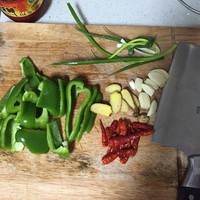 姜切片、蒜去皮拍扁(姜大概6片、蒜大概5个),葱、青椒切段。