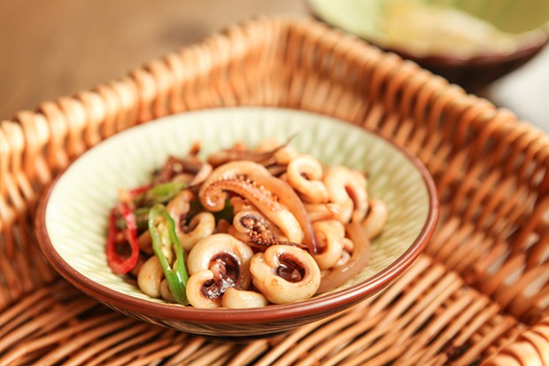 鱿鱼深受众多人群的喜爱,特别是在夏日傍晚的夜市,路两旁的吆喝声此起彼伏,烤的渍渍儿的鱿鱼香气扑鼻,让人忍不住吃了又吃呢。鱿鱼属于家常菜谱,自己在家随性创意一把,会吃的更放心哟!鱿鱼性味酸平,珍美;能益气壮志,通妇女月经,能入肝补血,入肾可滋水强志。其富含钙、磷、铁元素,利于骨骼发育和造血,能有效治疗贫血;除富含蛋白质和人体所需的氨基酸外,鱿鱼还含有大量的牛黄酸,可抑制血液中的胆固醇含量,缓解疲劳,恢复视力,改善肝脏功能;所含多肽和硒有抗病毒、抗射线作用。