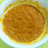 南瓜去皮去瓤,蒸熟捣碎成南瓜泥。蒸出来的水分不要倒掉了~