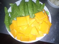 南瓜去皮切片雪豆去两角掰掉丝备用