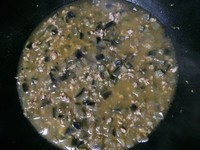 热锅后放入备用的底油,用葱姜末爆香,然后放入猪肉馅炒到发白。