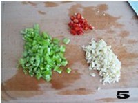 冷水入锅,将茄条放入蒸屉,盖上锅盖大火蒸7—8分钟,出锅后铺上蒜末、尖椒粒、小红椒,浇汁即可