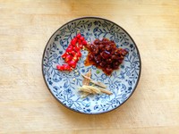 准备调料,姜切丝,小米辣切碎,一大茶匙香辣豆豉。