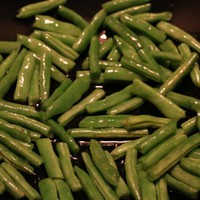 4. 四季豆炒至微焦黄后入水没过四季豆