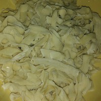 准备好面条,最好是宽的手擀面,没有就用机器面代替,最好别太细,面条要生的,不要煮,如果面条太长,用手揪成五厘米左右的小段,不要用刀,会影响味道
