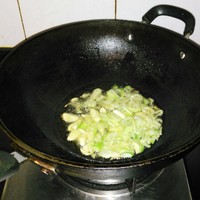加入扁豆翻炒,加盐,我没有加酱油,因为颜色会发黑,翻炒半分钟后加水,沿着锅边加,加到与扁豆齐平不要没过扁豆为宜