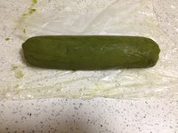 余下的一份面团加一茶匙抹茶粉揉搓成团做西瓜皮