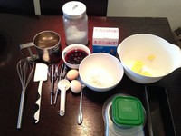 黄油与鸡蛋恢复至室温。混合低筋面粉与泡打粉,搅拌均匀后过筛备用。