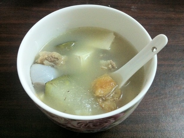 贤惠的妈妈善于熬制各式的汤冬日里的羊肉汤暖心暖胃夏日里则最爱这款柴鱼冬瓜豆腐汤清爽消暑鲜美无比如今离开家独自在外生活开始体会到用心制作美食与心爱的人一起分享的滋味是那么简单而平凡的幸福柴鱼健脾胃、益阴血,可补髓养精、明目增乳,热量低,用其做汤,味道甚佳。筒骨中的骨髓含有很多骨胶原,除了可以美容,还可以促进伤口愈合,增强体质。冬瓜性寒味甘,清热生津,僻暑除烦,且钾盐含量高,钠盐含量较低,可达到利尿消肿而不伤正气的作用。其含有的丙醇二酸还能有效地抑制糖类转化为脂肪,有助于减肥和形体健美。