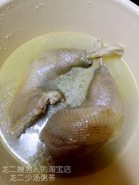 首先呢,水烧开后,把两个大大的洗干净的土鸡腿倒入锅中2分钟就捞出,这样可以去掉血水